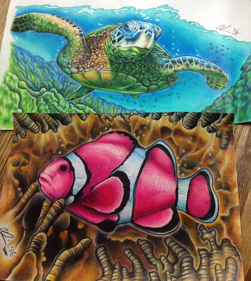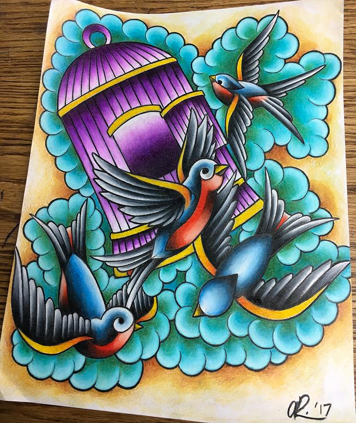 The Art: DrawingsCrocus Tattoo Studio2017-10-01T00:08:49+00:00 Koi swimming. Copic and pencil crayon on printer paper. 2014 Lotus in the waves. Copic in sketchbook. 2014 Roses and diamond. Copic in sketchbook. 2014 Rose study. Pencil crayon on printer paper. 2014 Peregrine Falcon. Pencil crayon on printer paper. 2014 A feast for crows. Copic on printer paper. 2014 Zen crane. Copic on printer paper. 2015 Cayman Blue Iguana (Blue Dragon). Copic on printer paper. 2016 La Tortuga and Clownfish. Pencil crayon on printer paper. 2016-17 Rose sketch. Ballpoint pen on printer paper. 2017 Dark horse. Copic and pencil crayon on printer paper. 2015 Bull shark. Pencil crayon on printer paper. 2016 Lionfish. Pencil crayon on printer paper. 2017 Fu dog statue. Pencil crayon on printer paper. 2017 ‘Chicken the Cat’ portrait. Pencil crayon on printer paper. 2017 The escape. Pencil crayon on printer paper. 2017 Samurai mask. Pencil crayon on parchment. 2010 Karasu at night. Acrylic on printer paper. 2015 Sasha portrait. Copic on marker paper. 2014 Mayan jaguar mask. Acrylic on canvas. 2014 Cayman parrot. Pencil crayon on printer paper. 2017 Sea turtle (La Tortuga). Pencil crayon on printer paper. 2016 Peonies. Watercolour. 2011 MORE FROM THE CROCUS COLLECTIONCrocus Tattoo Studio2017-10-01T00:08:49+00:00 The Art: Drawings The Art: DrawingsCrocus Tattoo Studio2017-10-01T00:08:57+00:00 The Art: Shoulder The Art: ShoulderCrocus Tattoo Studio2017-10-01T00:09:07+00:00 The Art: Back The Art: BackCrocus Tattoo Studio2017-10-05T00:36:44+00:00 The Art: Leg The Art: LegCrocus Tattoo Studio2017-10-01T00:09:21+00:00 The Art: Torso The Art: TorsoCrocus Tattoo Studio2017-10-01T00:09:26+00:00 The Art: Arm The Art: Arm
